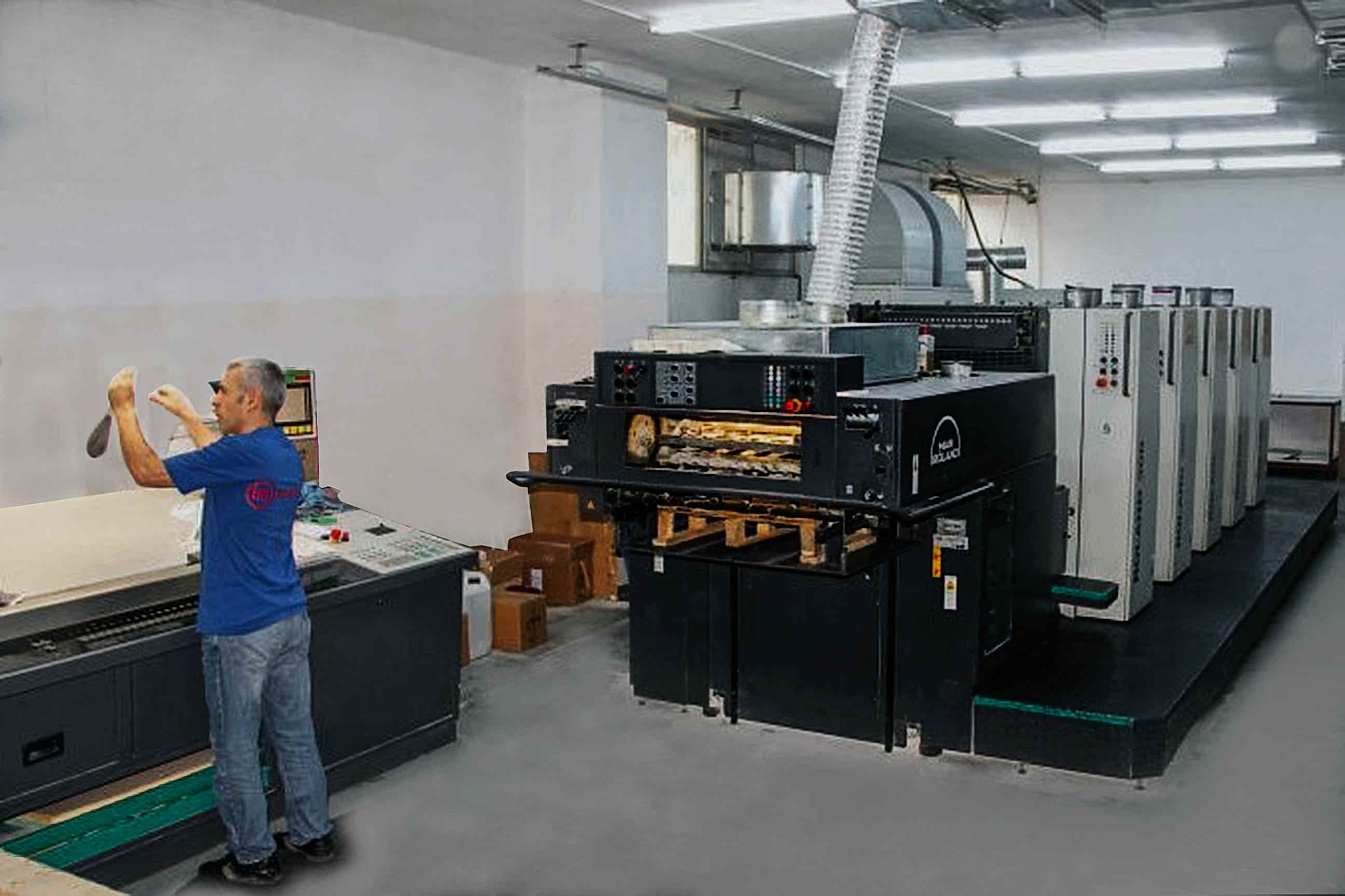Baskı işlerini sektörde bilinen üç – dört matbaa ile çözüyordum. İşler ilerlediğinde, müşteriler yerimizi görmek istediler. O zaman bir makine almak durumunda kaldık ve Rusya’dan bir Roland 204 50 x 70 dört renk baskı makinesi aldık. 2012’de gelen o makineden çok çektik ama iyi yol aldık. Böylece üretime başlamış olduk. Bu Makineyi 2014’te İntermak’tan aldığımız aynı ebatta, 5 renk Roland 305 ile değiştirdik. Bu makinemiz tam otomatik, bilgisayar kontrollü, kalıp okumalı bir makine. Aynı zamanda CIP yazılımı ile hazne kontrolü ve baskıya kalibre edilmiş monitörle baskı kontrolü sağladığımız bir üretimimiz var.